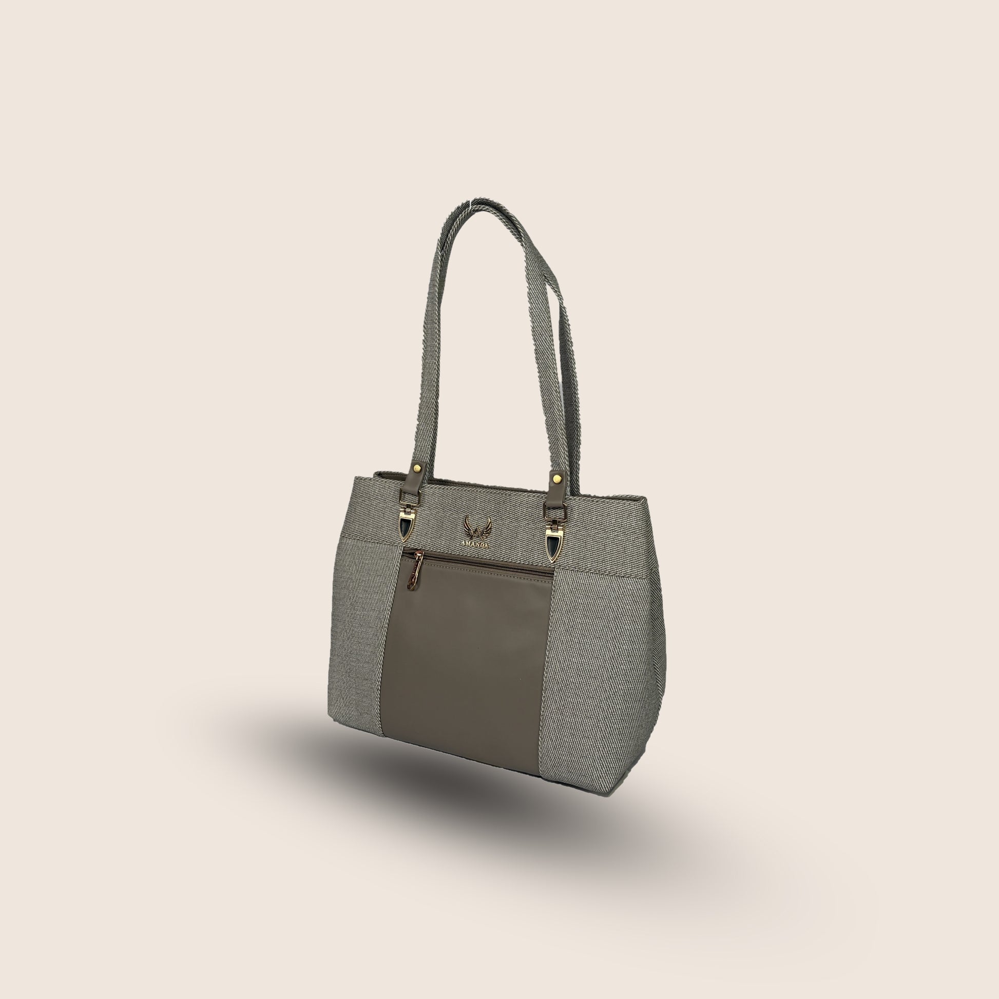 This silver Amanda vegan leather handbag offers modern sophistication in a compact yet spacious form. Designed for refined daily styling and professional settings.