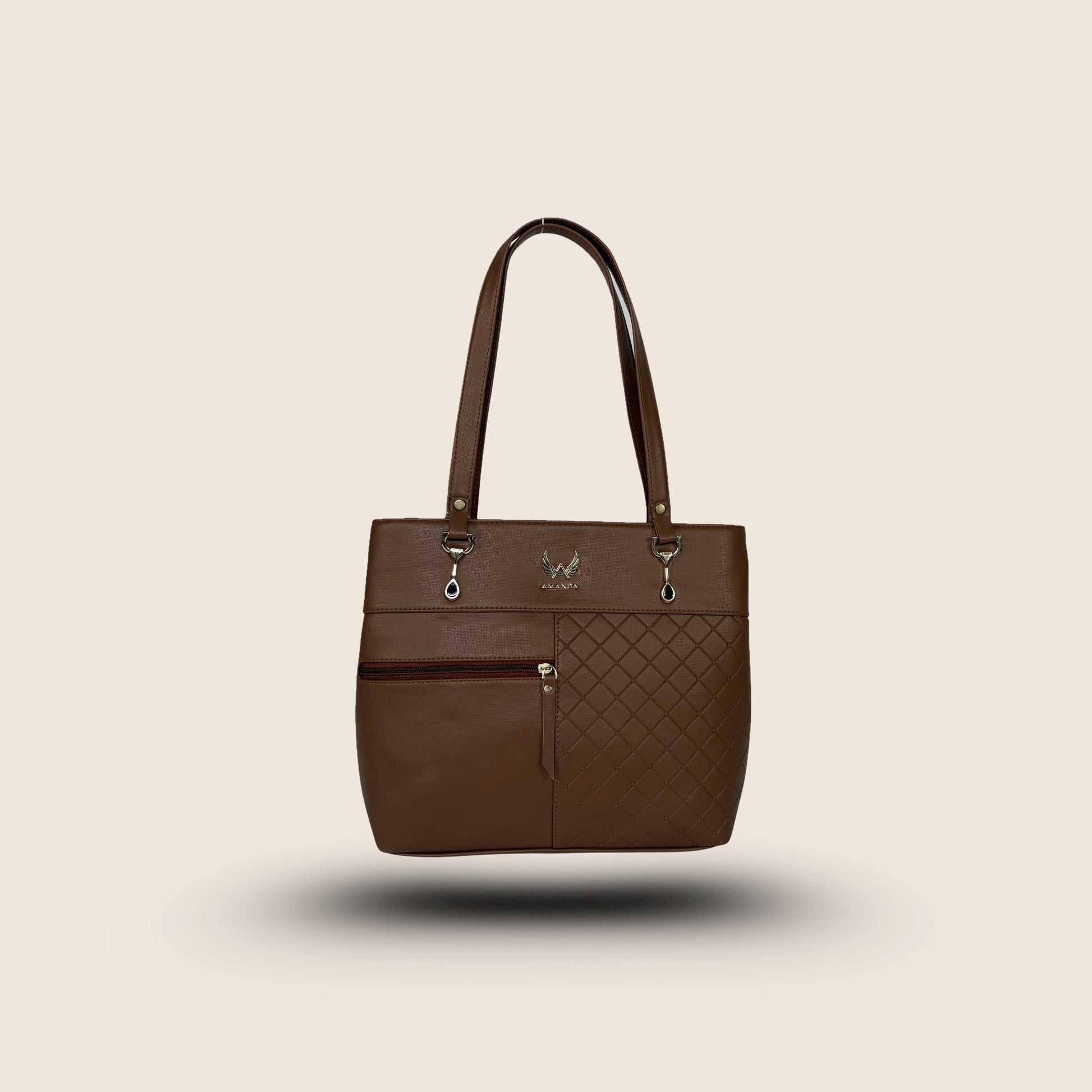 This tan Amanda vegan leather handbag is crafted for sophisticated everyday use. The taller profile and added front zipper enhance functionality while maintaining a polished, professional look.